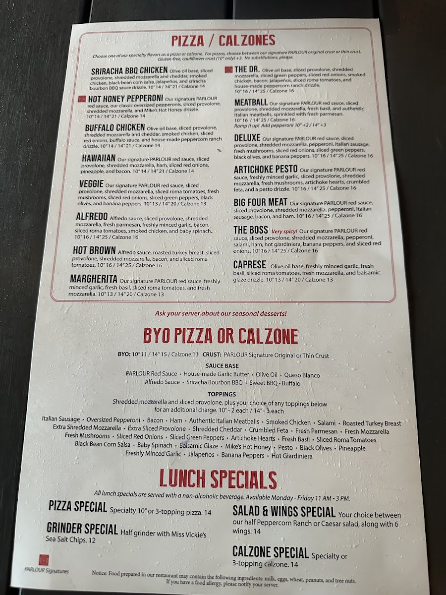 Welcome to PARLOUR, a vibrant spot located at 131 W Chestnut St, Jeffersonville, IN. We're excited to share a menu that celebrates flavor and creativity, perfect for casual lunches or lively gatherings.